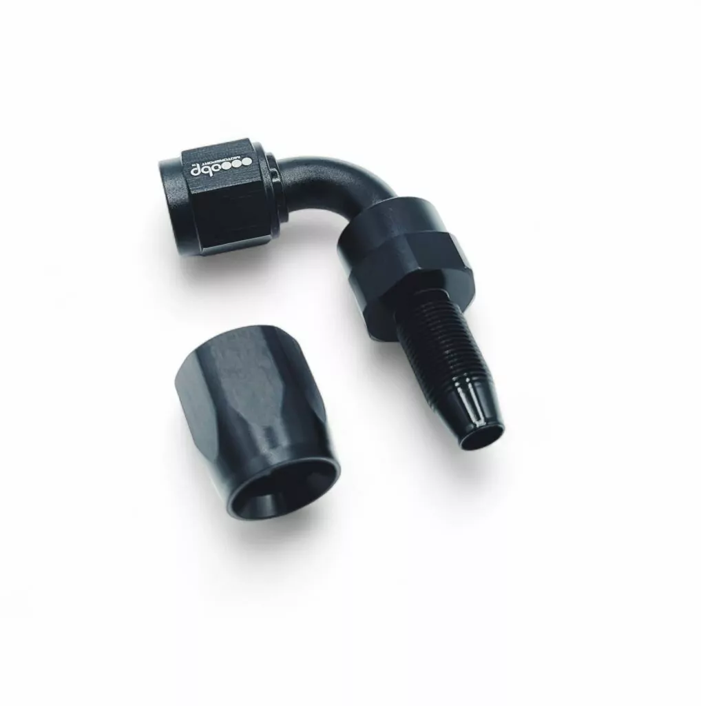 90° Aluminium Stealth Black AN Fuel Hose Fitting – Compact, High-Performance Fluid Routing Solution
