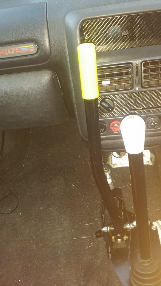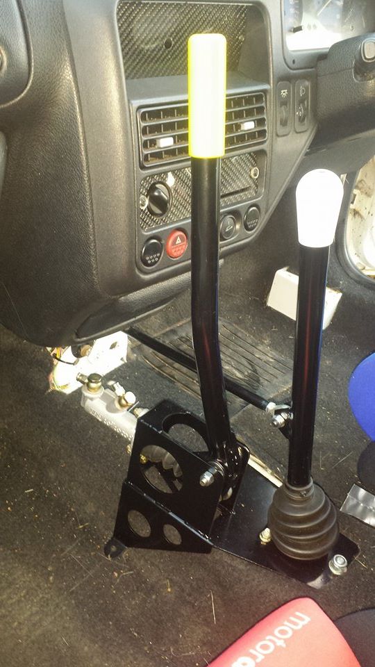 Replacement base plate for the 106/Saxo Satchshift incorporating master cylinder housing and handle for hydraulic handbrake operation. Includes 5/16 unf female rose joint for connection to master cylinder. Optional 0.625 Wilwood master cylinder.