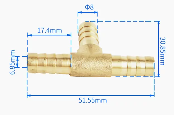 Our Solid Brass 8mm OD Tee Fuel Hose Coupling Connector is a high-quality 3-way T-piece designed for branching fuel lines in automotive and industrial applications. Precision-machined from solid brass, this durable connector provides excellent corrosion resistance and compatibility with a wide range of fuel types.