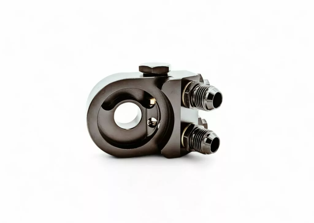 The multi angle thermostatic design allows the oil cooler hose to run either straight out the sandwich plate or at a 45deg angle. With this, it also allows you to use the other ports for sensors or other connectors.