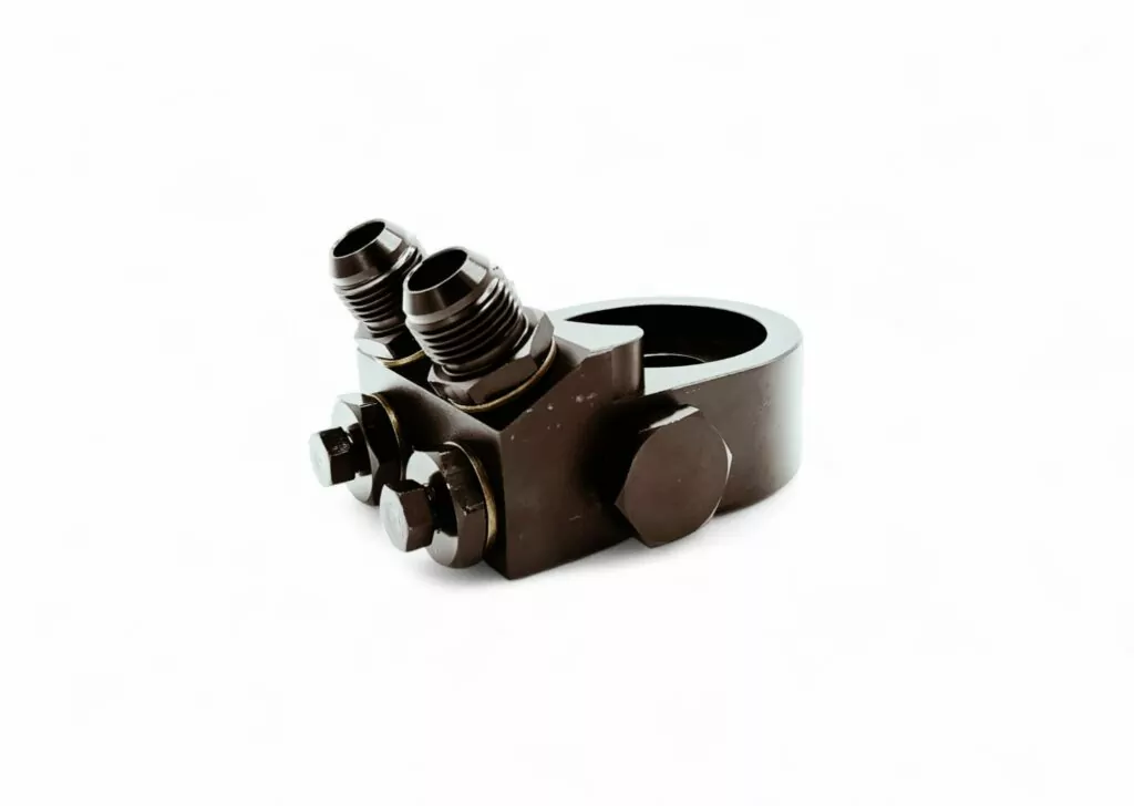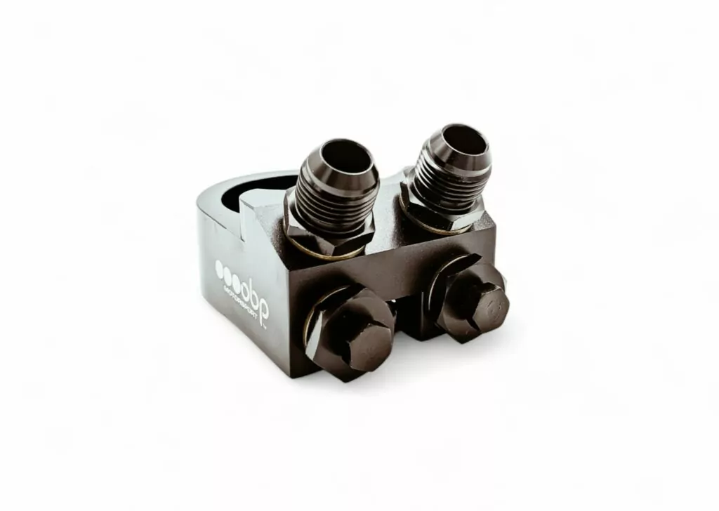 The perfect solution for allowing oil to be taken from the oil filter head to the Oil Cooler comes the CNC Machined Aluminium obp Oil Cooler Sandwich Plates.