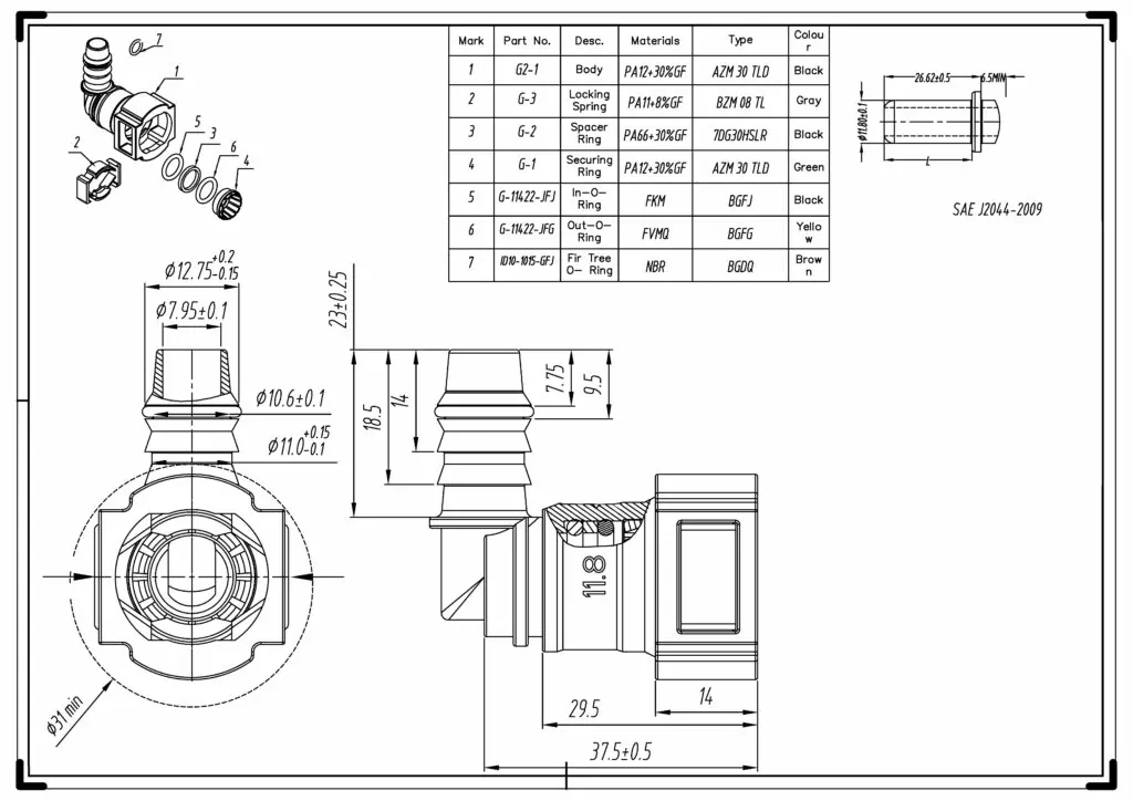 Engineered for performance and reliability, our OE Fuel Line Quick Release Connector is manufactured from high-grade black PA12 (Polyamide 12) and incorporates Viton® O-ring seals for superior chemical resistance and long-term durability. Designed to meet SAE J2044 standards, this connector delivers consistent, leak-proof performance in demanding fuel system applications.