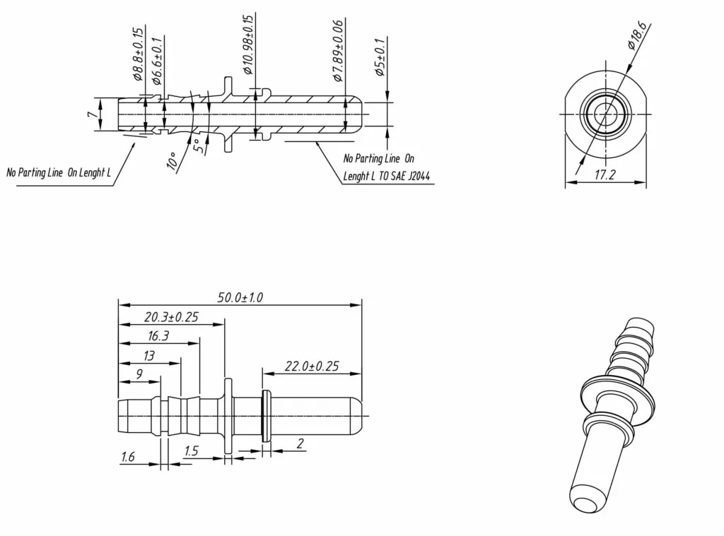 Engineered for performance and reliability, our OE Fuel Line Quick Release Connector is manufactured from high-grade black PA12 (Polyamide 12) and incorporates Viton® O-ring seals for superior chemical resistance and long-term durability. Designed to meet SAE J2044 standards, this connector delivers consistent, leak-proof performance in demanding fuel system applications.